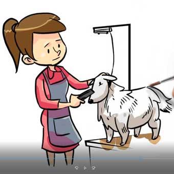 Dog grooming business animated video promo template customized with your contact information. Promotes dog and pet groomer services. Black and white version available or get both b-w and colorized. See option drop-down below.